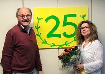 Gerade sind die Feierlichkeiten zum 40-jährigen Firmenjubiläum zu Ende gegangen, steht schon der nächste denkwürdige Termin ins Haus. Ida Turzer führt mit einer Betriebszugehörigkeit von 25 Jahren die Liste der Mitarbeiter an. Nur noch übertroffen von unserem Seniorchef. Natürlich ein Grund zum Feiern: Beim kleinen Umtrunk mit Sekt ehrt die komplette Belegschaft traditionell mit einem Lied – der Text aus der Feder des Chefs höchstpersönlich – die hocherfreute Kollegin. Nach Übergabe der obligatorischen Urkunde und eines angemessenen Geschenkes wurde der Festakt mit einem gemeinsamen Mittagessen beendet. Wir freuen uns über das langjährige, zuverlässige und einsatzfreudige Engagement von Frau Turzer in unserem Unternehmen und hoffen auf weitere gute Zusammenarbeit.